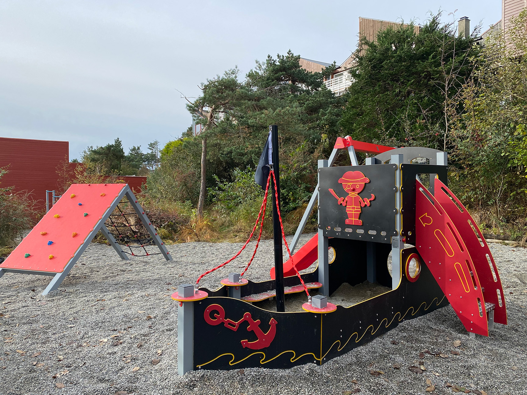 Her vil du finne fargerike lekeapparat med elementer som utsiktstårn, plattformer, klatrevegg, kiosk, kryptunnel, klatrenett, rutsjebaner, Svanemerkede huskestativ og mange flere morsomme element som oppfordrer til rollelek og samspill mellom barna.