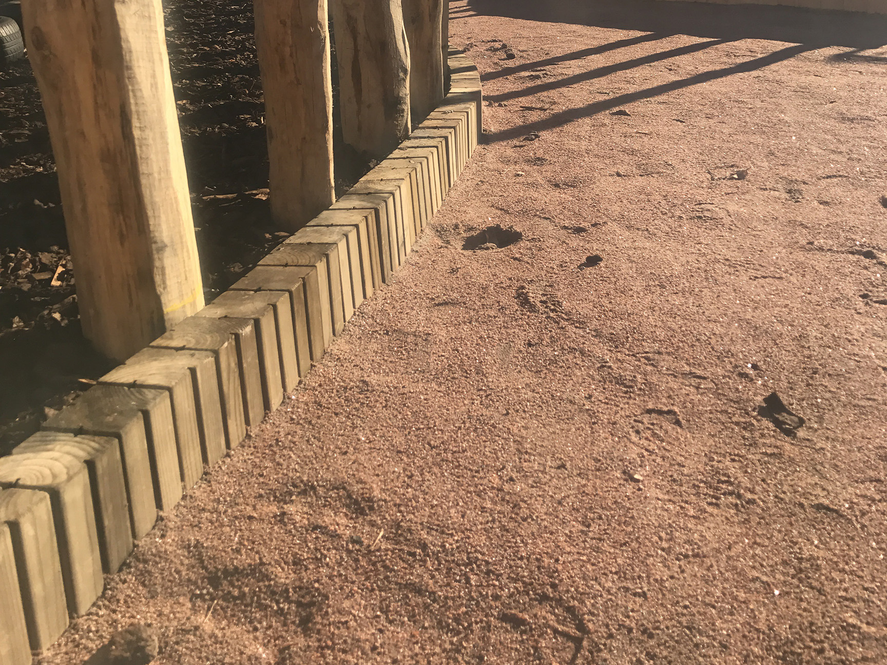 Sandkassekanter og rundstokk skaper tydelige lekeområder