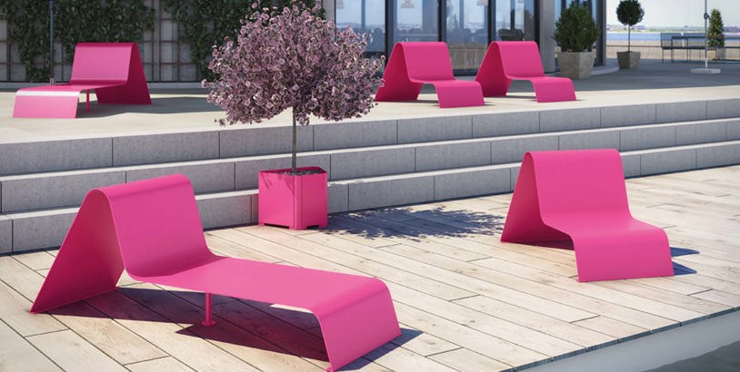 Trendy Loungemøbler i stål, som kan produseres i den fargen du måtte ønske. Her kan du virkelig sette farge på tilværelsen! Med sitt organiske design, som nærmest imiterer bølger, ble AQUARIUS et selvsagt navn på denne serien.
