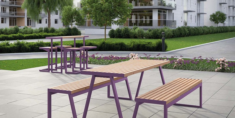 Enkel, lett og luftig design som utfordrer sansene. Et rettvinklet uttrykk forfra, men skjeve vinkler fra siden. De stilfulle ståbordene og barmøblene er nytenkende i det offentlige rom. De inviterer til korte pauser og møter, og blir et sted hvor man ønsker å tilbringe tid.