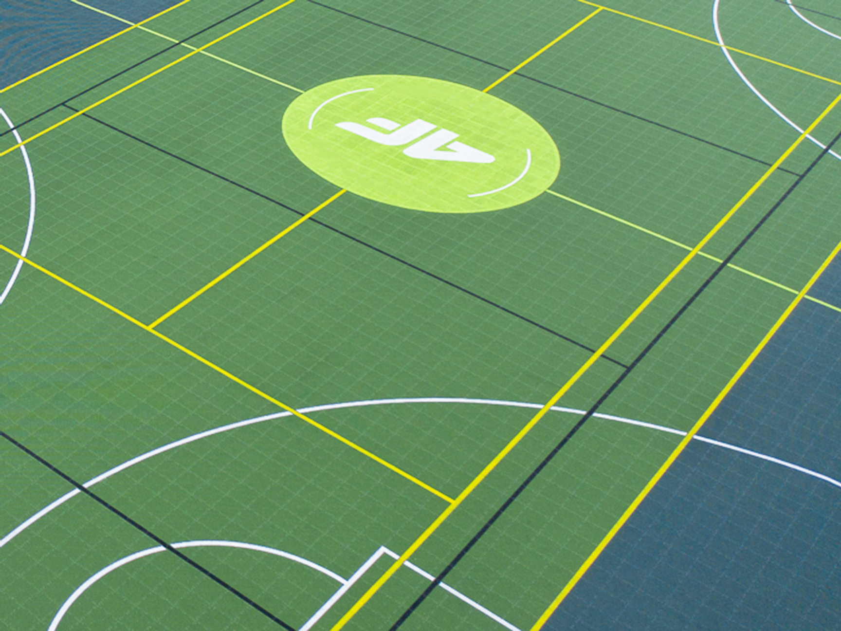 Skap en trygg og attraktiv idrettsarena med vårt praktiske utendørs sportsgulv – perfekt for multifunksjonelle idrettsplasser i skolegårder og parker. Velg blant flere farger og design, både med og uten ferdig oppmerking, og tilpass banen etter dine behov.
